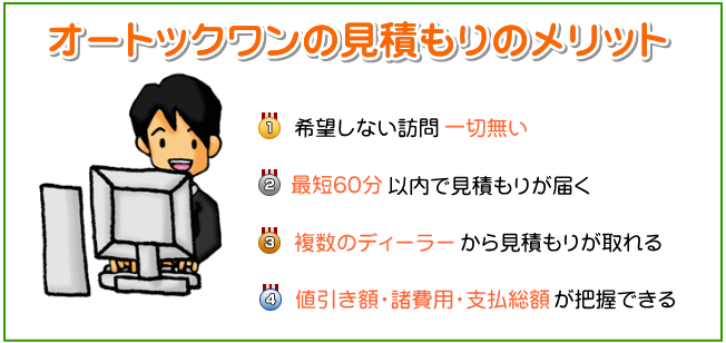 オートックワンは多くの販売店の見積もりを無料で取り寄せることができます。やる気のある営業マンが作成した見積には値引きも売り込みコメントもある場合が多いので一目瞭然です。